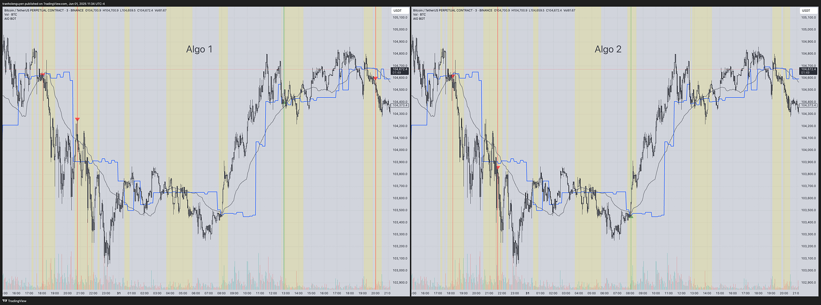 Algo 1: ON by default. This algorithm is built on the basis of the Key Volume Candles, VWAP, Pivot, Candlestick structure