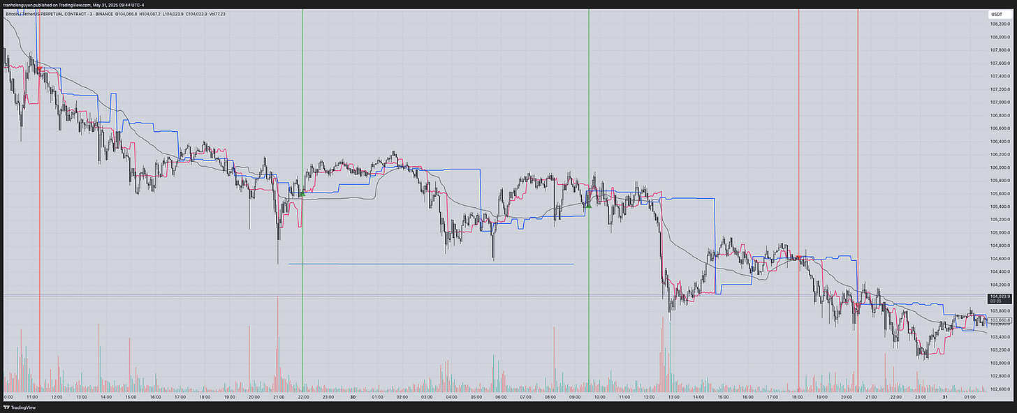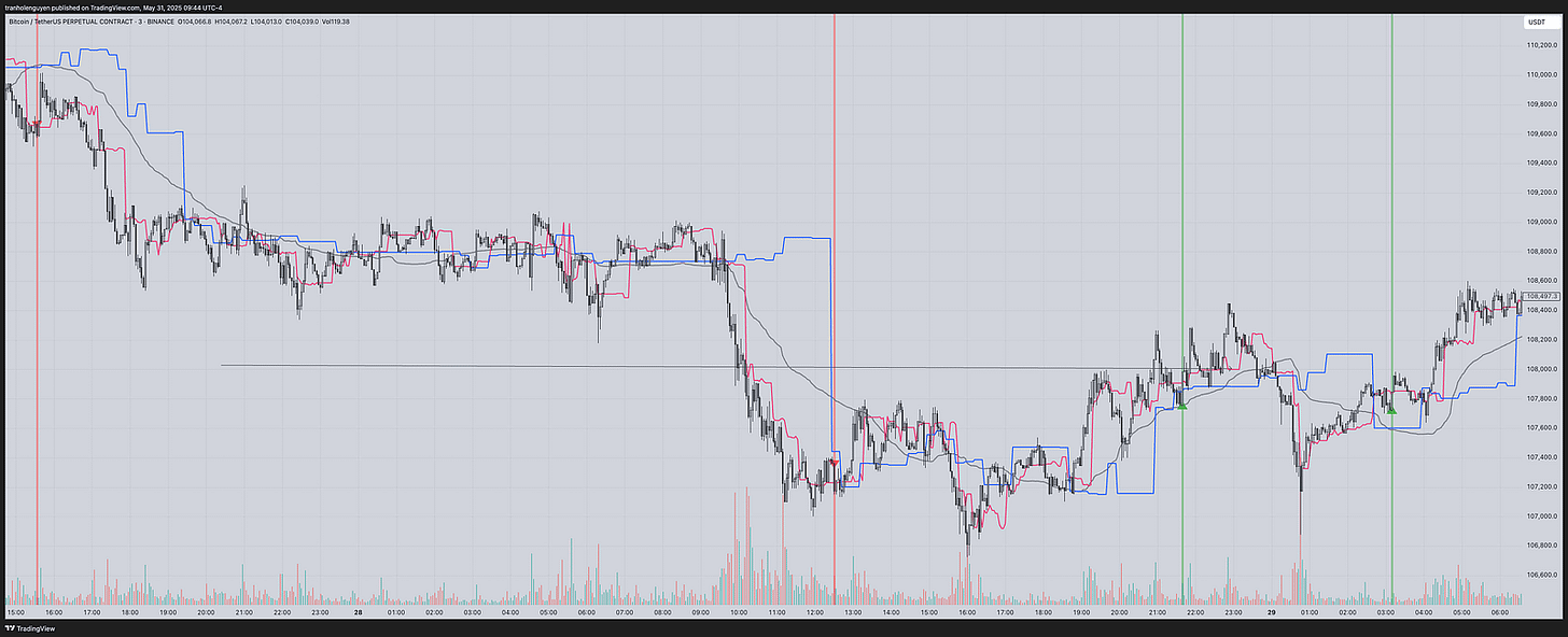 Since AIO BOT uses higher timeframe data, it may sometimes produce repaint signals, especially when the signal is triggered by the key volume line of the higher timeframe (the blue line). To ensure the signal is accurate, wait for at least 2–3 more candles, then refresh the chart to confirm it’s not a false signal before entering the trade.