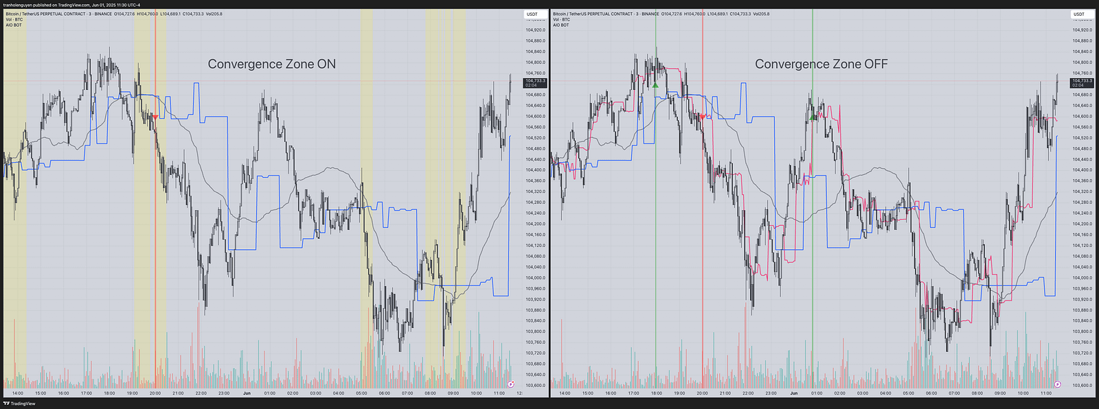 Additionally, there are some coding logics that we use to determine the signal candles like: convergence threshold (% of ATR) and pivot to filter good signals.