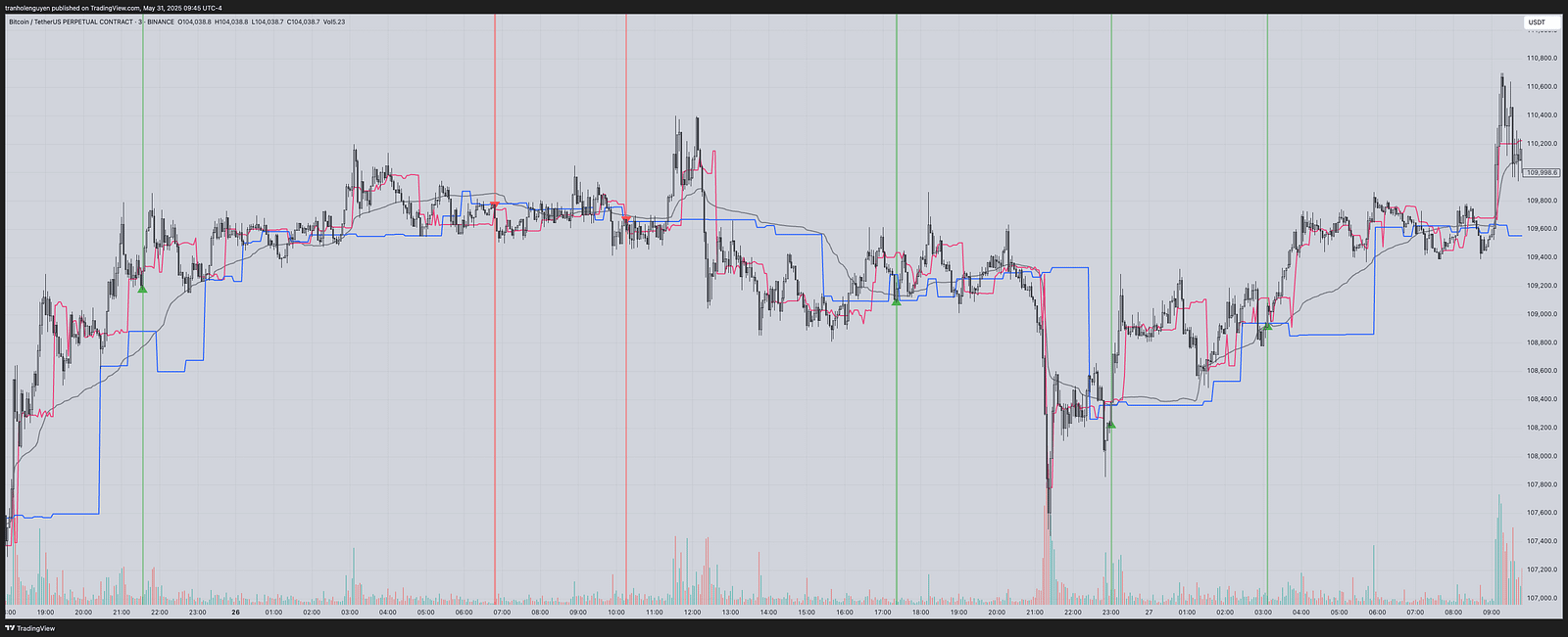 Prioritize buying when the price is above all three lines: the two key volume lines and the VWAP line.