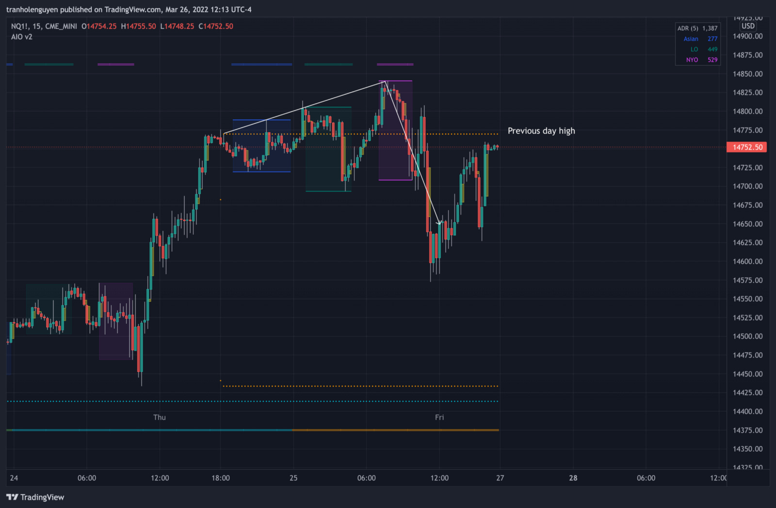 Previous Day’s High/Low or Previous Week’s High/Low are also key levels to pay attention to how price reacts at these levels. For example, These are maybe market retrace/reversal/accumulation areas that market makers aim to raid retail traders.